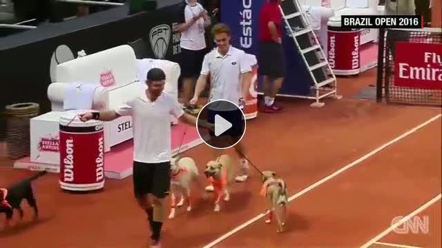 Brezilya Açık Tenis Turnuvası'nda yeni bir ilke imza atıldı. Terk edilen köpekler top toplayıcı olarak eğitildi ve ilk maçlarına çıktılar. İşte o renkli anlar...