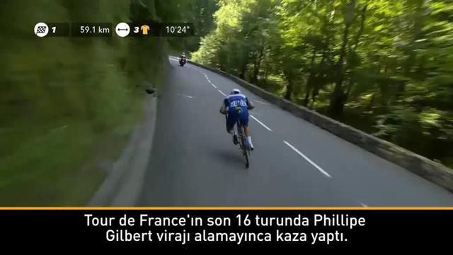 Tour de France'ın son 16 turunda Phillipe Gilbert virajı alamayınca şarampole yuvarlandı.