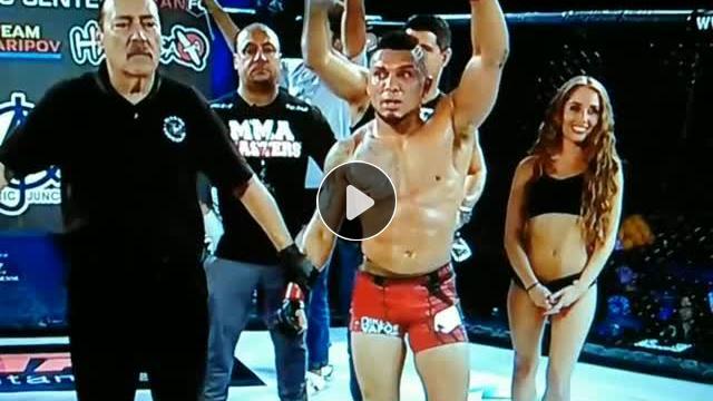 Bir MMA dövüşçüsü maçı kaybettiği anda üzüntüsünü yaşarken yanında bulunan ring kızına yanlışlıkla zarar verdi.