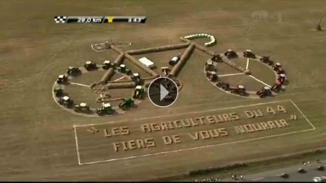 Fransa Bisiklet Turu inanılmaz görüntülere sahne oluyor. Turun bir etabında çiiftçiler muhteşem bir koreografi ile bir şov hazırlamışlar. Traktörleri ile bu şova destek veren çiftçiler güzel görüntülerin ortaya çıkmasını sağladılar.