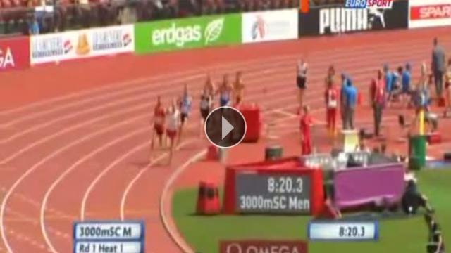 Zürih’te düzenlenen 2014 Avrupa Atletizm Şampiyonası 3000 metre engelli yarışında İspanyol atlet Victor Garcia son engele takılıp feci şekilde düştü.