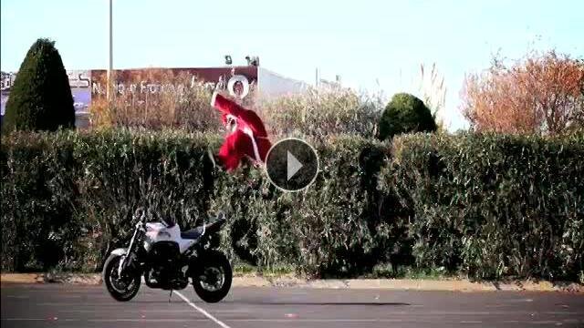 Profesyonel motorsiklet şov sürücüsü Jorian Ponomareff Noel için Noel Baba kılığına girdi ve yine bildik hareketleri ile küçük bir şov yaptı.