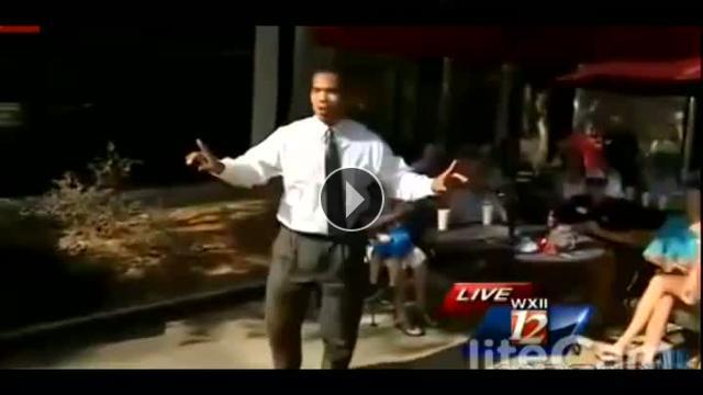 Amerika'da televizyon programı için çekim yapan muhabir, ponpon kızlara ayak uydurmaya çalışınca pantolonunun dikişleri patladı.