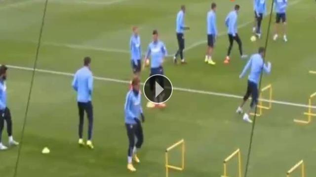 Atletico Madrid'de forma giyen Alessio Cerci, antrenman sırasında engel çubuğu ile zor anlar yaşadı....