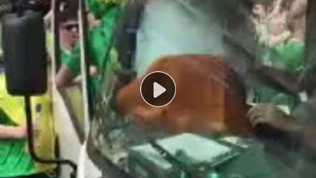 İrlanda taraftarları maç öncesi bir kamyonun üstüne çıkarak tezahüratta bulundular