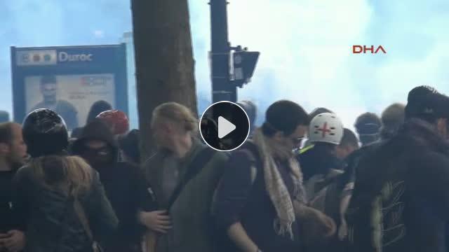 EURO2016 başladı başlayalı olayların ardı arkası kesilmiyor.Bu kez polis, Pariste eylem yapanlara biber gazı ve tazyikli su ile müdahale etti.