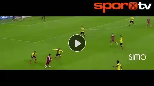 Kupa maçında Bayern Münih'li Thiago Alcantara, 2 Dortmund'lu futbolcunun arasından böyle rahat çıktı.
