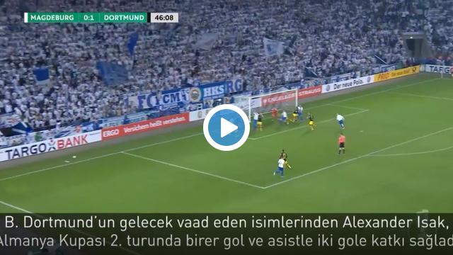 Borussia Dortmund’un gelecek vaad eden isimlerinden Alexander Isak, Almanya Kupası 2. turunda birer gol ve asistle iki gole katkı sağladı.
