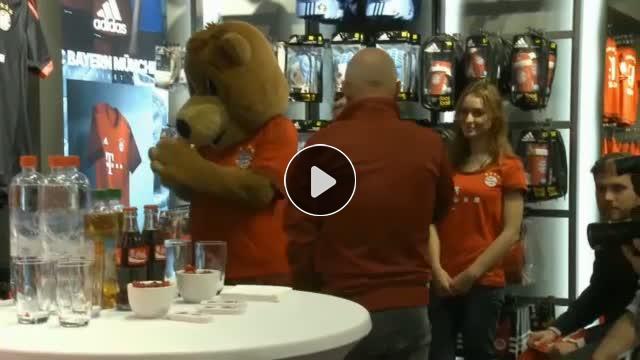Bayern Münih'e ait bir mağazanın açılışında Bavyera ekibinin yıldız isimlerinden Mario Götze, takım maskotu Berni'nin elini havada bıraktı.