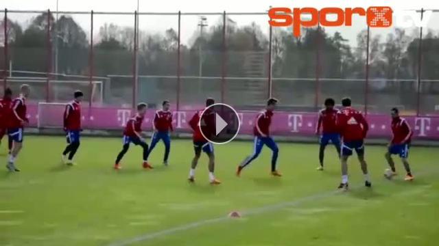 Bayern Münih'li futbolcular idmanda tiki-taka çalışması yaptı.