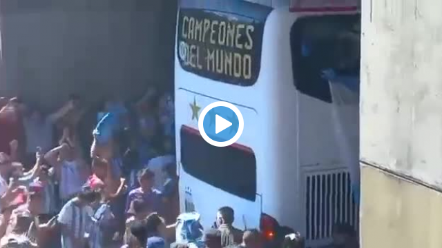 Arjantinli taraftarlar, çılgın kutlamada üst geçitten takım otobüsüne atlamayı başardılar.