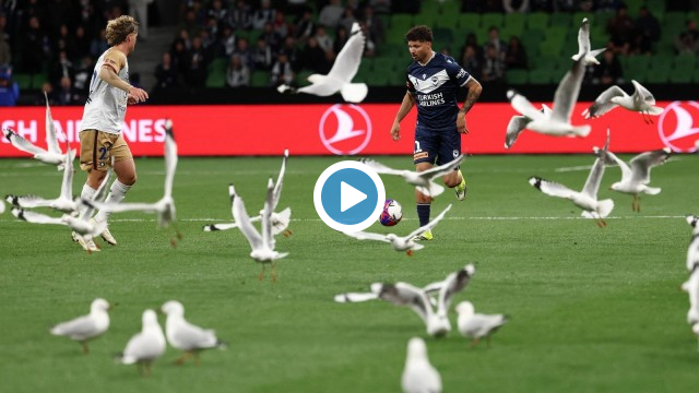 Avustralya A-League’de Melbourne Victory ile Newcastle Jets arasında oynanan maçta, son dakikalarda sahayı basan martılar oyunu durdurarak karşılaşmaya damga vurdu.