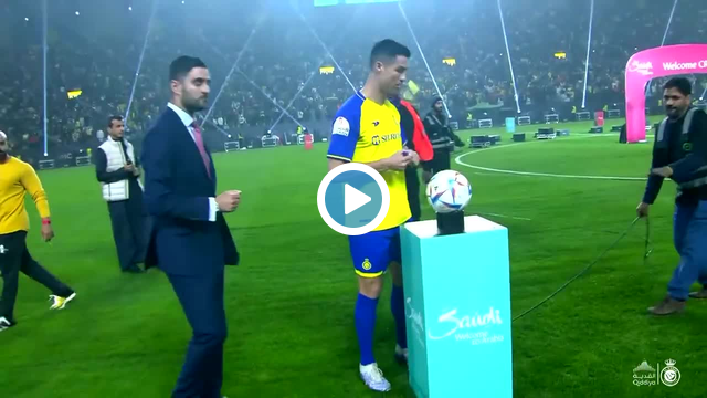 Cristiano Ronaldo, Al Nassr taraftarlarının karşısına çıktıktan sonra bir topu imzaladı ve minik hayranına verdi.