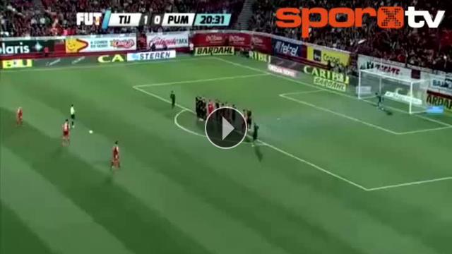Meksika'da oynanan Tijuana - Pumas UNAM maçında ev sahibi ekip Tijuana forması giyen Juan Arango uzak mesafeden attığı harika frikik ile izleyenleri kendine hayran bıraktı.