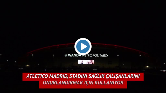 Atletico Madrid, sağlık çalışanlarını alkışlayarak onurlandıran insanların videolarını stadının ekranlarına yansıtıyor.