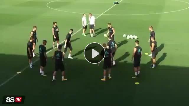 Real Madrid'in sağ beki Dani Carvajal, antrenman sırasında yüzüne top gelince sinirleniyor.