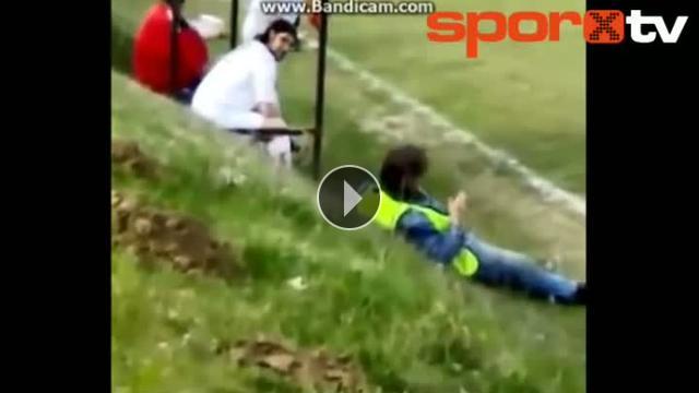 Macaristan'da oynanan bir maçta sarhoş güvenlik görevlisi taraftarları kahkahaya boğdu...