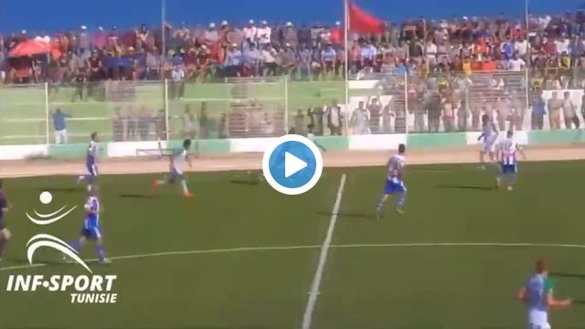 Tunus 3. Ligi'nde oynanan maçta çekilen bir görüntüde, savunmanın arkasına atılan uzun top sonrası kalesini terk edip çok riskli bir müdahaleyi başarıyla yapan kaleci bununla da yetinmeyip adeta şov yapıyor.
