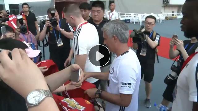 Manchester United'ın tecrübeli teknik direktörü Jose Mourinho formaları imzalarken Chelsea formasını reddetti.