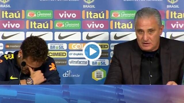 Brezilya Teknik Direktörü Tite, Neymar'la ilgili haberlere cevap verirken, yıldız isim göz yaşlarına hakim olamadı ve basın toplantısını terk etti.