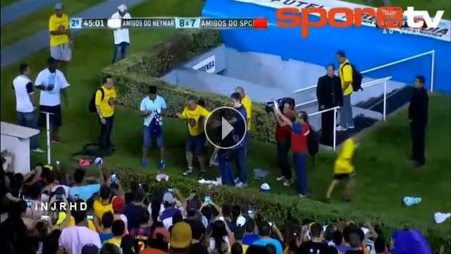 Brezilya'da oynanan dostluk maçında forma giyen Neymar, maçın bitmesiyle birlikte çoraplarına varana kadar her şeyini tribünlere attı...