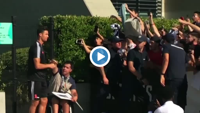 Cristiano Ronaldo, Antrenman için geldiği tesislerin girişinde kendisine ilgi gösteren taraftarla buluştu.