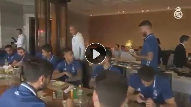 Sergio Ramos Ballon d'Or kazanan süperstar takım arkadaşı Cristiano Ronaldo'ya ödül şeklinde pasta ikram etti.