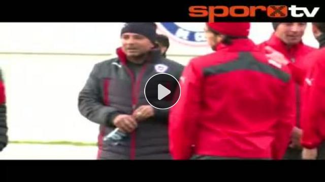 Şili antrenmanında Alexis Sanchez Şilili genç bir futbolcuya verdiği kramponlarla jest yaptı.