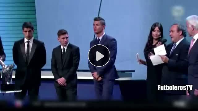 Barcelona'nın yıldız ismi Luis Suarez, UEFA yılın golü ödül töreninde sunucu Melanie Winigers'in kalçalarına bakarken yakalandı.