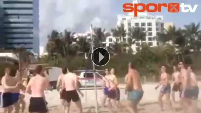 Manchester United'ın efsane kalecisi Edwin Van Der Sar Miami sahillerinde plaj voleybolunda şov yapıyor...