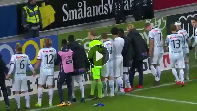 İsveç Ligi'nde oynanan maçta Gefle takımının oyuncuları, galibiyet sevincini tribünde yer alan tek taraftarıyla yaşadı.