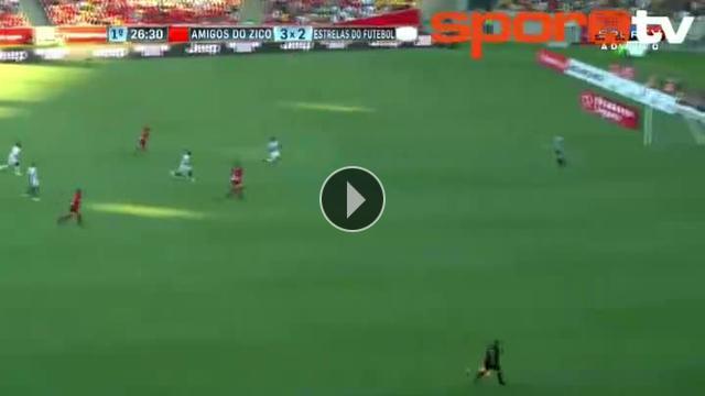 61 yaşındaki Brezilya efsanesi ve Fenerbahçe'nin eski teknik direktörü Zico, gösteri maçında attığı golden sonra Robinho ile samba yaptı.