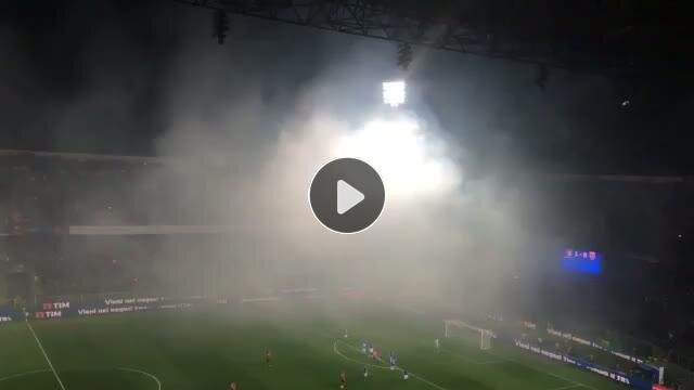 İtalya'nın 1-0'lık üstünlüğü ile devam eden İtalya-Arnavutluk maçı, Arnavut taraftarların sahaya attığı maddeler nedeniyle durdu.