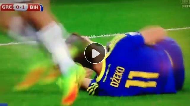 Bosna Hersek'in yıldızı Edin Dzeko, Yunan rakibi Sokratis Papastathopoulos'un şortunu indirdi.