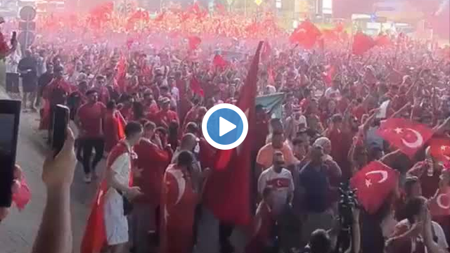 Onbinlerce Türk taraftarlar, EURO 2024 çeyrek final maçı öncesi Berlin Olimpiyat Stadyumu'na yürüyor.
