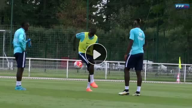 Fransa'nın genç yetenekleri Paul Pogba ve Kurt Zouma antrenmanda yeteneklerini sergilediler.