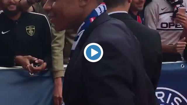 PSG'nin yeni transferi Kylain Mbappe, basının karşısında çıktığı törenin ardından taraftarlarla buluştı.