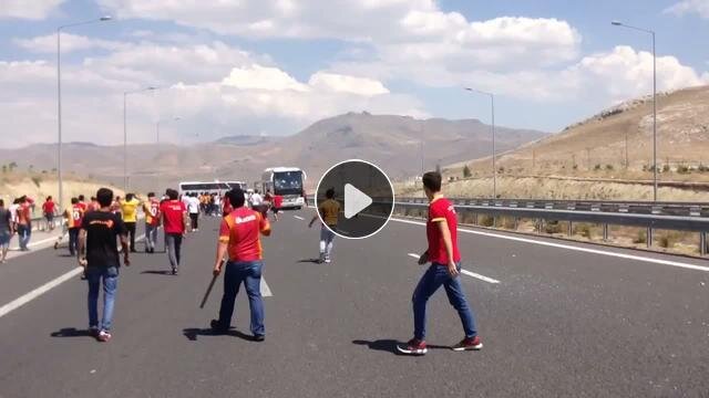 Galatasaraylı taraftarlar, Süper Kupa maçı öncesinde Beşiktaşlı taraftarları taşıyan otobüslere saldırdı.