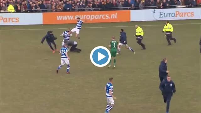 Hollanda İkinci Ligi'nde De Graafschap ile Go Ahead Eagles arasında oynanan maçın ardından Go Ahead Eagles taraftarları galibiyeti kutlayan De Graafschap futbolcularına saldırdı.