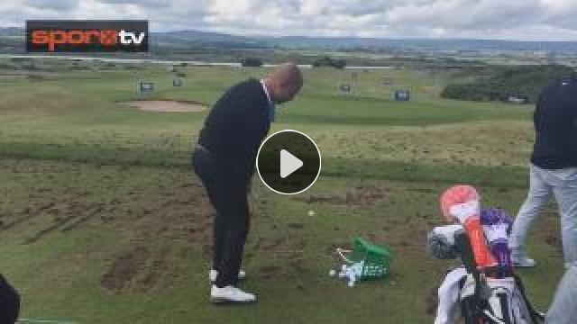 Manchester City menajeri Pep Guardiola, golfteki hünerlerini sergiliyor.