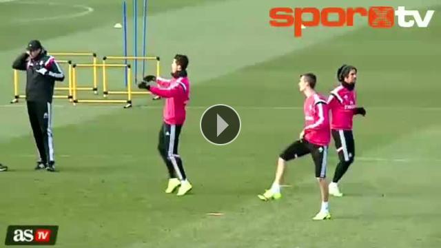 Real Madrid'in son yapılan antrenmanında Portekizli yıldız Ronaldo ısınma hareketleri yaparken Ancellotti ona takılmadan gecemedi...