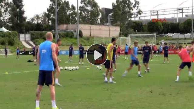 Arda Turan ile Kobe Bryant bir araya geldi. Arda, ABD'deki ilk antrenmanında takımdan ayrı çalıştı.