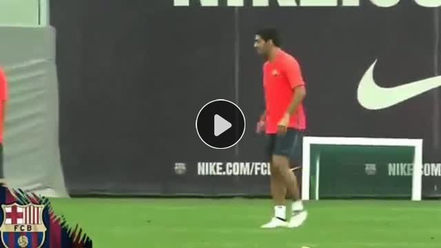 Barcelona'da forma giyen Milli futbolcumuz Arda Turan, antrenmanda Suarez'le adeta alay etti.