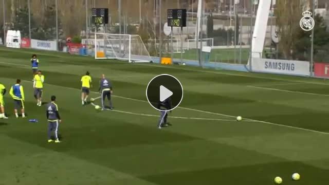 Real Madrid'in yıldız oyuncusu Gareth Bale antrenmanda teknik direktör Zidane'ın pasında şık bir gol attı!