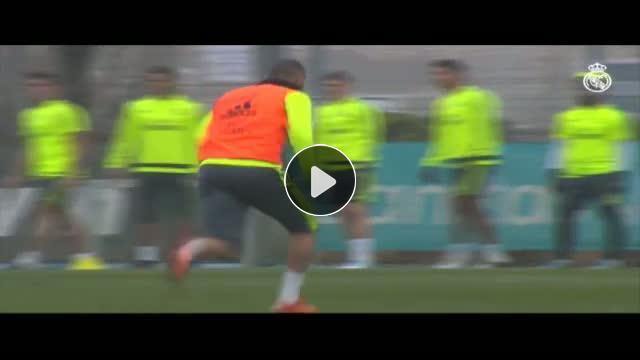 Real Madrid'in dünyaca ünlü yıldızı Cristiano Ronaldo antrenmanda attığı golden sonra takım arkadaşları Ronaldo'nun ünlü bağırışını yaptılar.