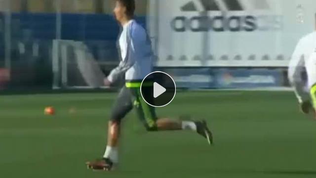 Real Madrid'in yıldız Cristiano Ronaldo antrenmanda müthiş bir aşırtma golüne imza attı...