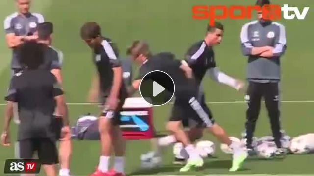 Real Madrid antrenmanına yapılan top kapma çalışmasında gözler Portekizli yıldız Cristiano Ronaldo'nun üzerindeydi.