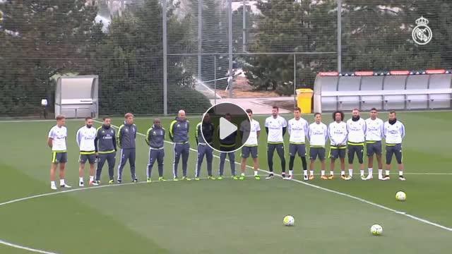 Milli takıma çağırılmayan oyuncularla idmanlarına devam eden Real Madrid'in teknik direktörü Zinedine Zidane, öğrencileriyle birlikte Belçika'nın Brüksel kentinde yaşanan terörist saldırılarda hayatını kaybedenler için antrenman öncesinde bir dakikalık saygı duruşunda bulundu.