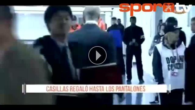 Real Madrid'in Cruz Azul ile oynadığı maç sonrasında tecrübeli kaleci Casillas hayranını kırmamak için şortunu verdi...
