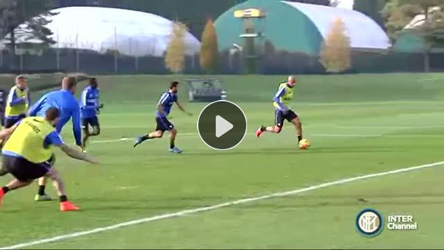 Inter'in başarılı oyuncusu eski Galatasaraylı Felipe Melo antrenmanda net bir pozisyonu gole çeviremeyince sinirlendi ve reklam panosunu tekmeledi...